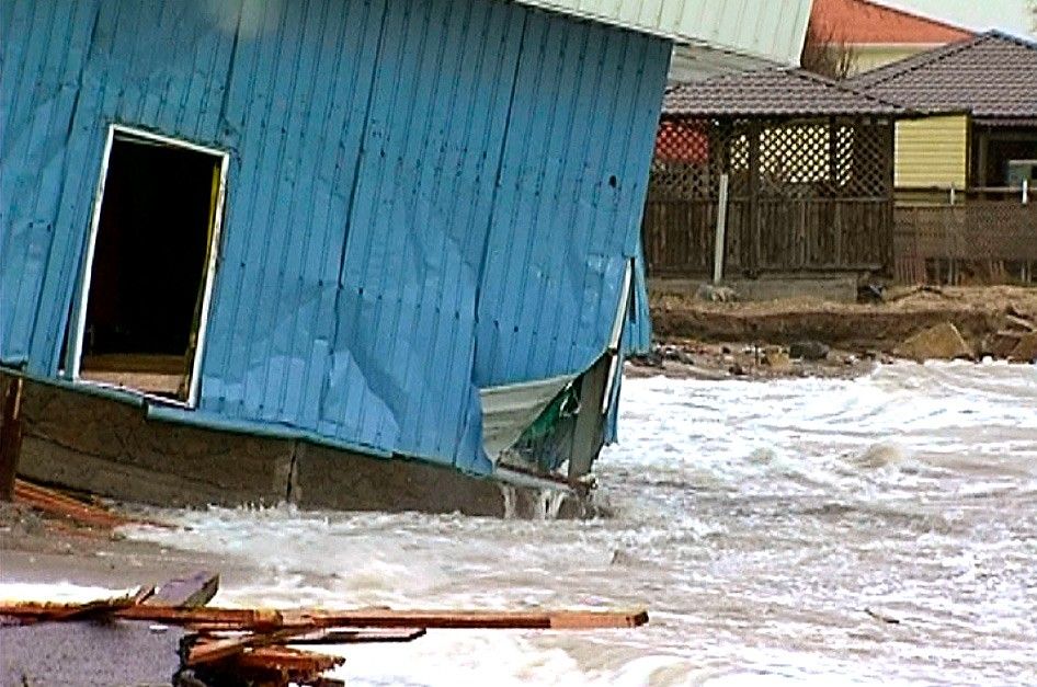 Море разрушило несколько сезонных временных сооружений и в некоторых местах вплотную подошло к дороге. При сильной волне вода заливала и проезжую часть.