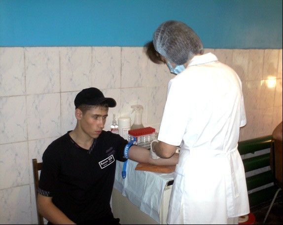 26 липня, представниками обласного центру ВІЛ–СНІД на базі медичної частини Бердянської виправної колонії № 77 було проведено забор крові засуджених з метою виявлення ВІЛ.