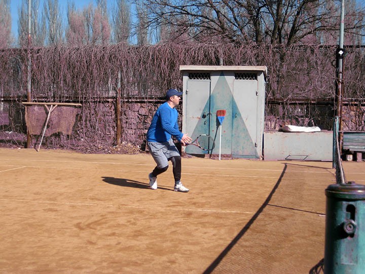 Теннисный турнир прошел на корте, расположенном в микрорайоне «Колония». Участники за зиму соскучились по игре, что нашло свое отображение как в запредельном желании, так и в большом количестве невынужденных ошибок.