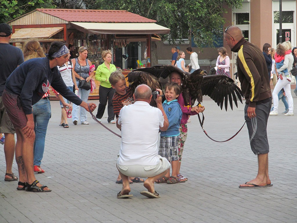 Тем, кто неравнодушен к животным, тоже понравится вечерняя прогулка по Бердянску. Здесь можно сфотографироваться с голубями, орлами, даже питоном. Конечно, без хитростей не обходится. К примеру, молодые люди с красивыми породистыми голубями настойчиво предлагают прохожим, особенно детям, погладить птичку. Когда люди, под впечатлением начинают фотографироваться с пернатыми созданиями, «голубятники» предъявляют счет – одно фото 10-20 гривен. Даже если сразу же удалить снимки, деньги заплатить все равно придется – «за прокат птички».