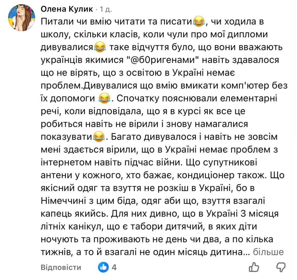 Одна з бердянок поділилася, що іноземці не вірять в розумові здібності українців та якісну освіту в країні.