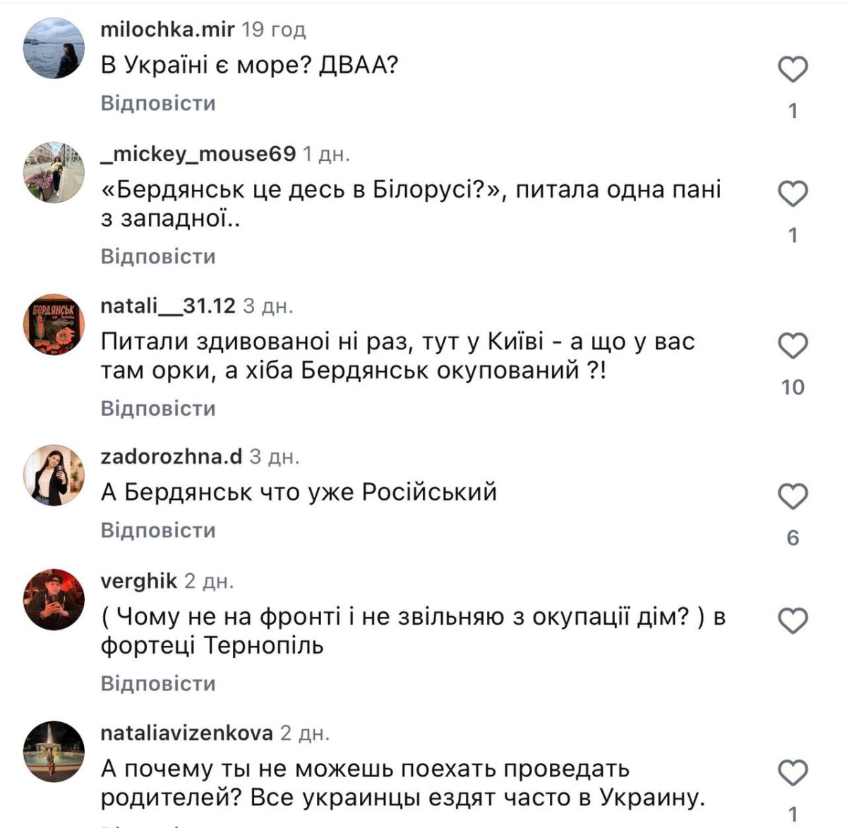 «Бердянськ – це десь в Білорусі?» – питала одна пані з західної України.