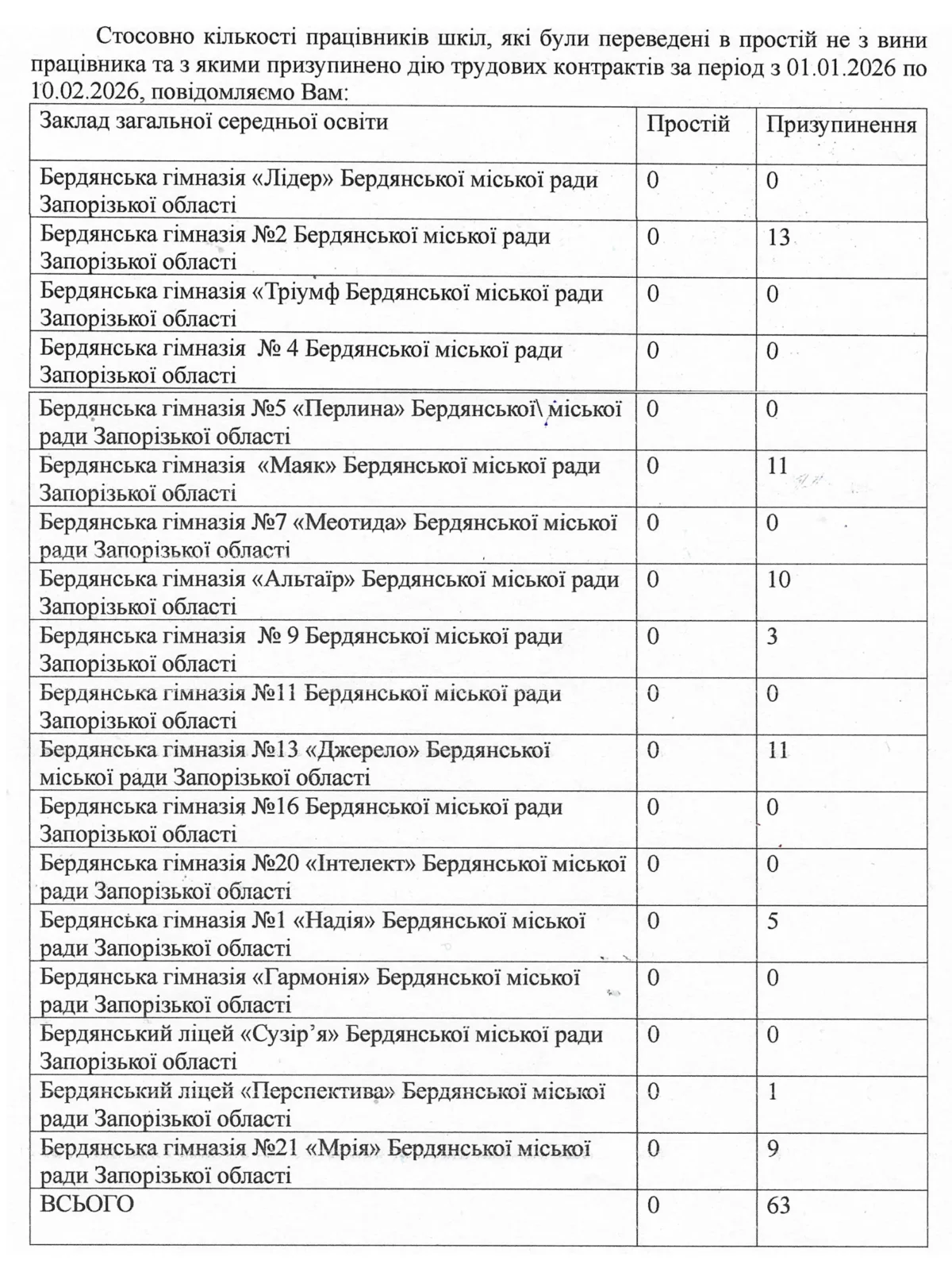 У відповідь на наш запит відділ освіти повідомив, що з початку повномасштабного вторгнення жодних скорочень педагогічних працівників не відбувалось. Так само наразі немає викладачів, які б перебували «на простої», водночас дійсно відділ освіти призупиняє трудові відносини з деякими вчителями. Лише в січні 2026 року таких випадків було 63.