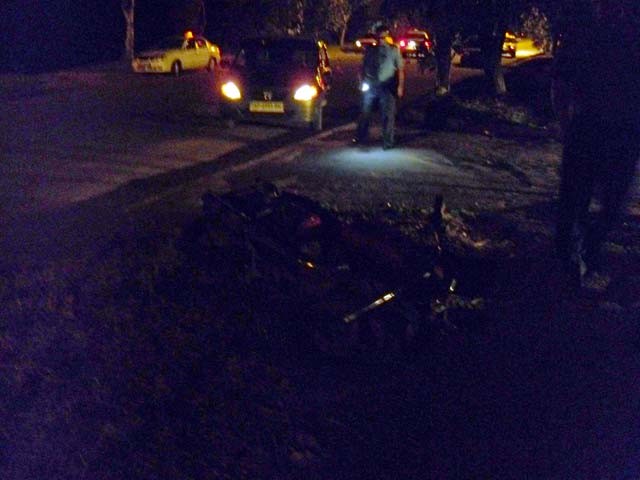 Автомобиль Renault Dacia при попытке повернуть во двор был протаранен мотоциклом, который по словам очевидцев ехал без включенного света и не включал левый повортник при обгоне. Водитель и пассажир мотоцикла были без шлемов, их забрала скорая помощь с подозрениями на сотресение мозга.