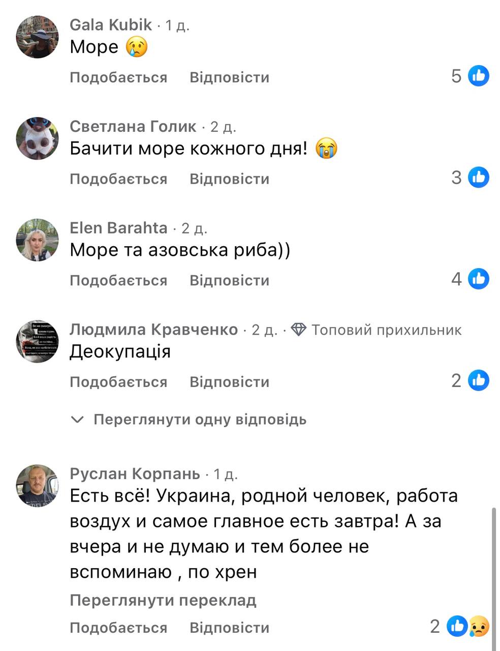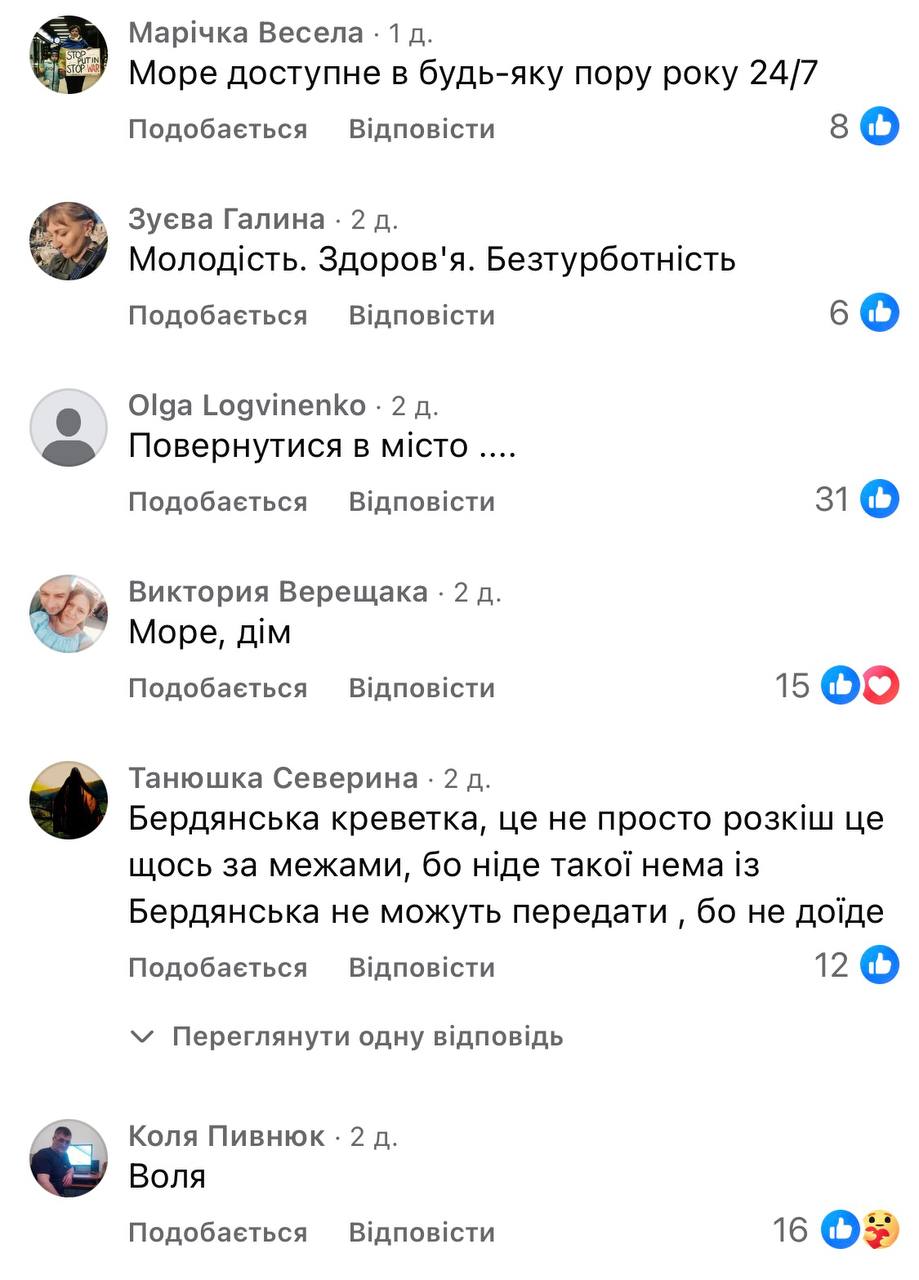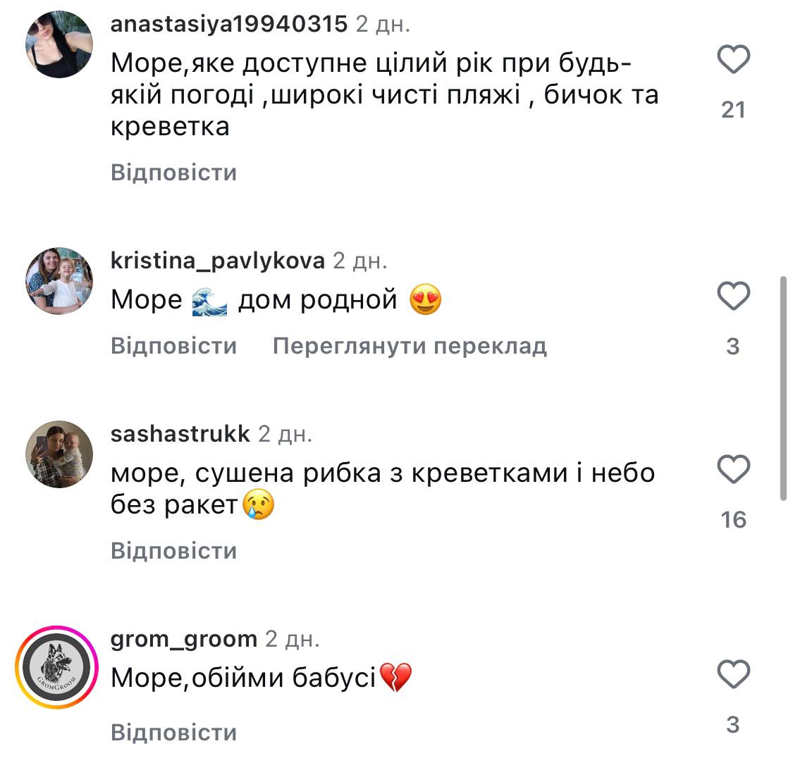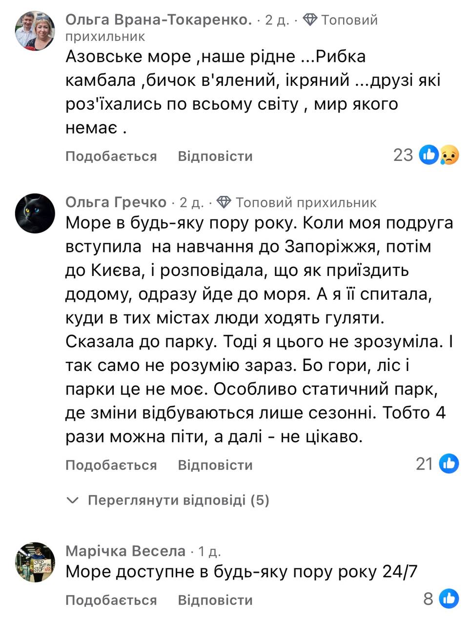 «Прогулятись вночі вздовж моря, спостерігати за грозою, вдихати повітря спокою і свободи… це не пояснити тому, хто не жив усе життя біля моря», – зізнається одна з коментаторок.