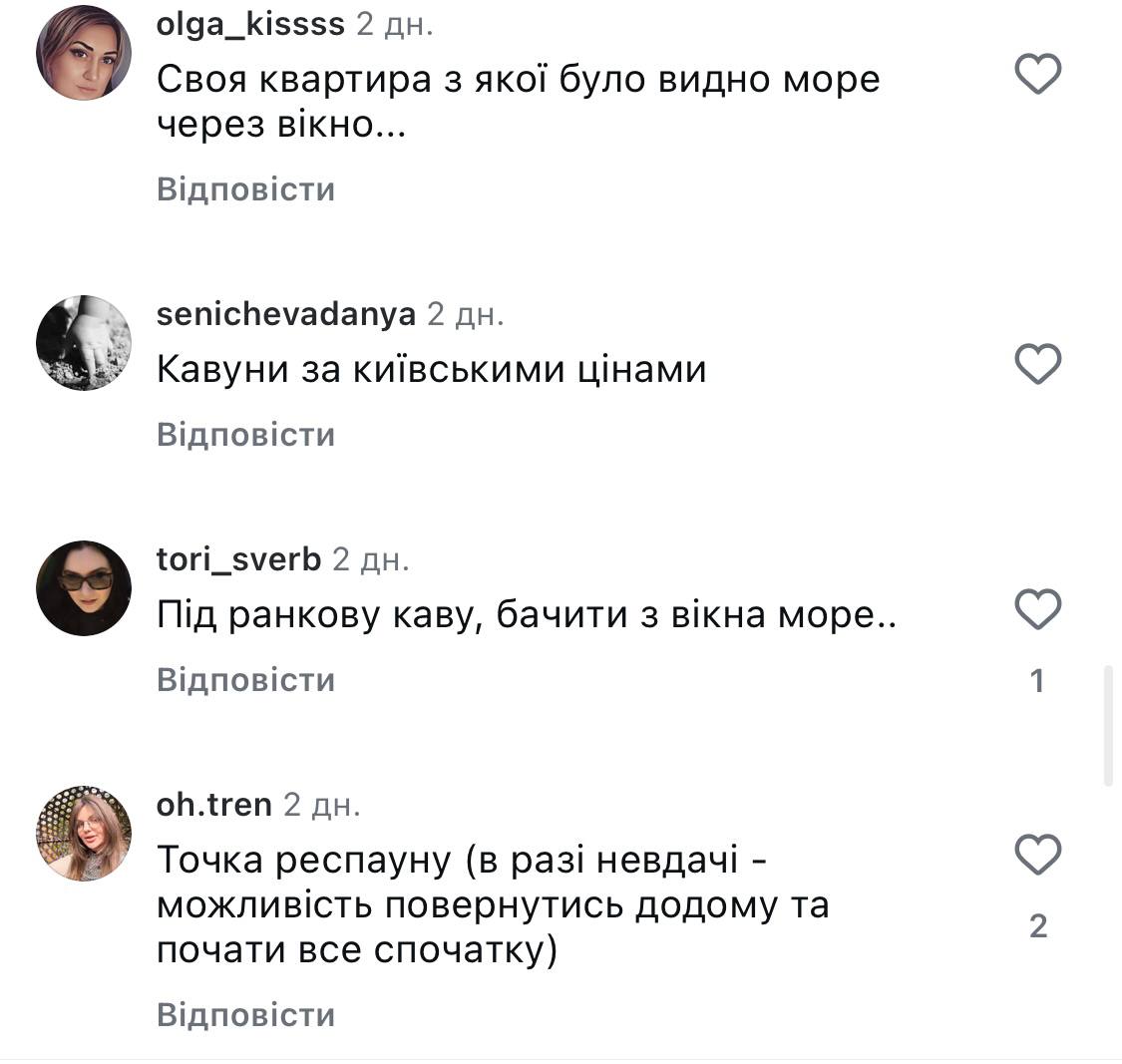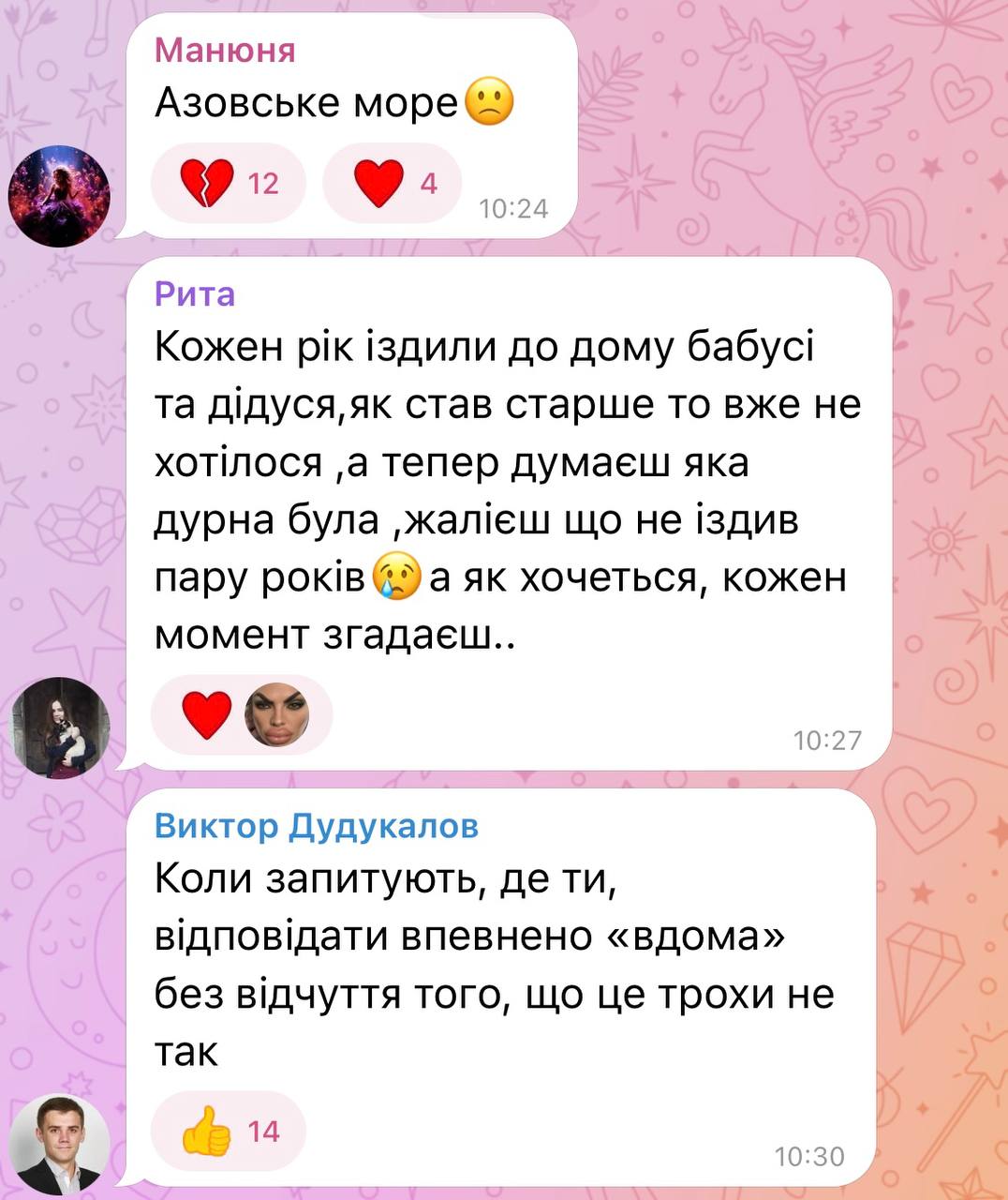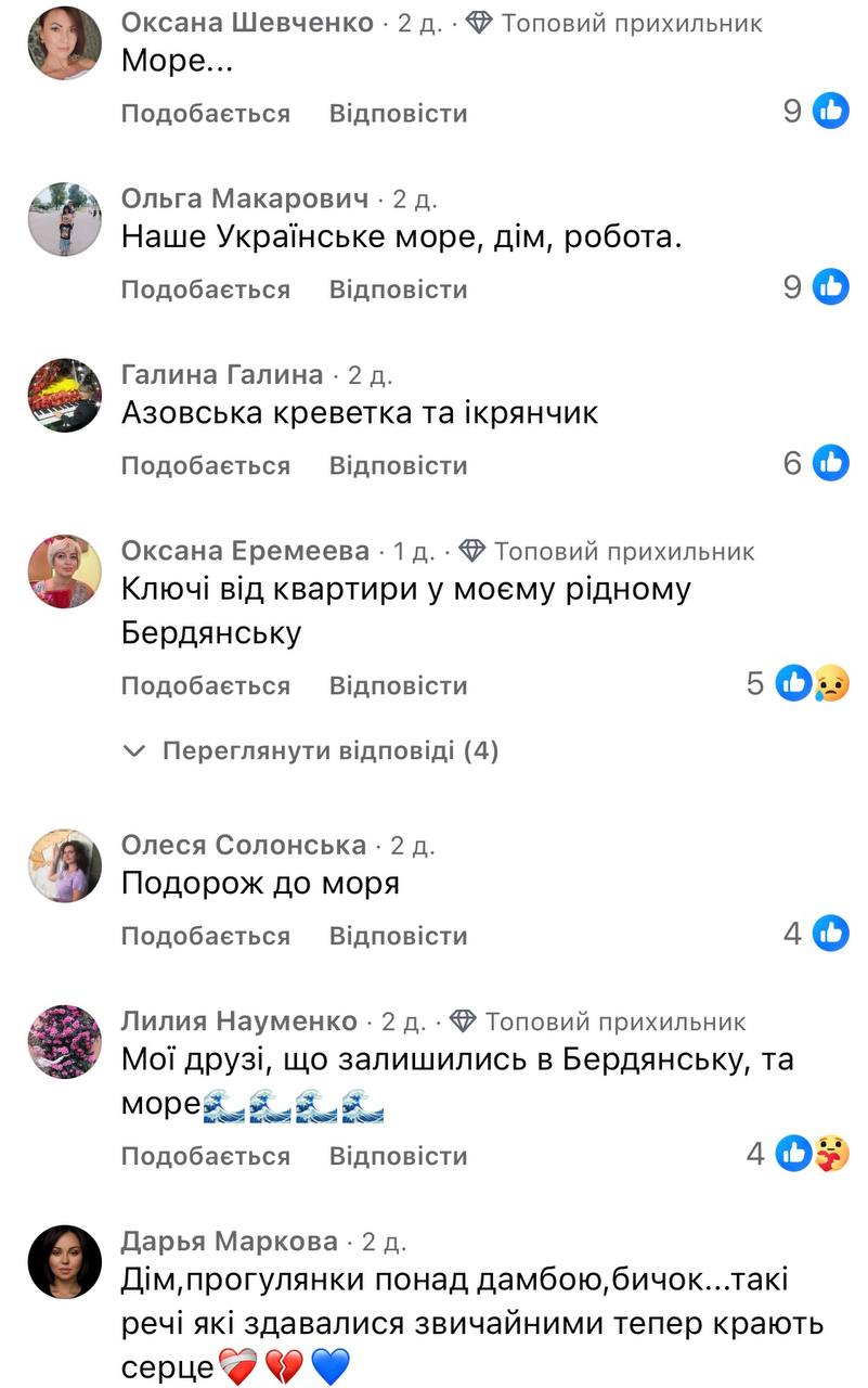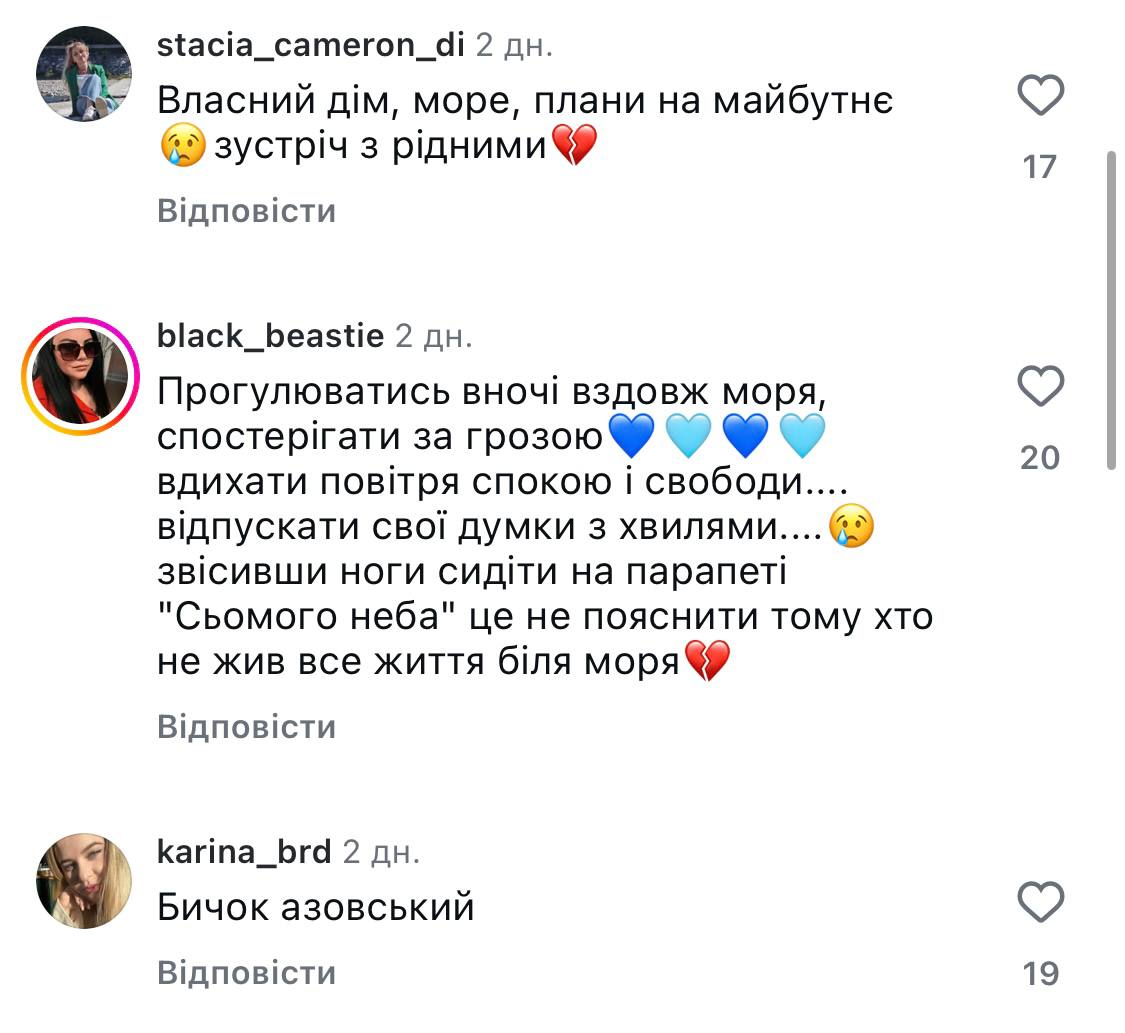 «Прогулятись вночі вздовж моря, спостерігати за грозою, вдихати повітря спокою і свободи… це не пояснити тому, хто не жив усе життя біля моря», – зізнається одна з коментаторок.