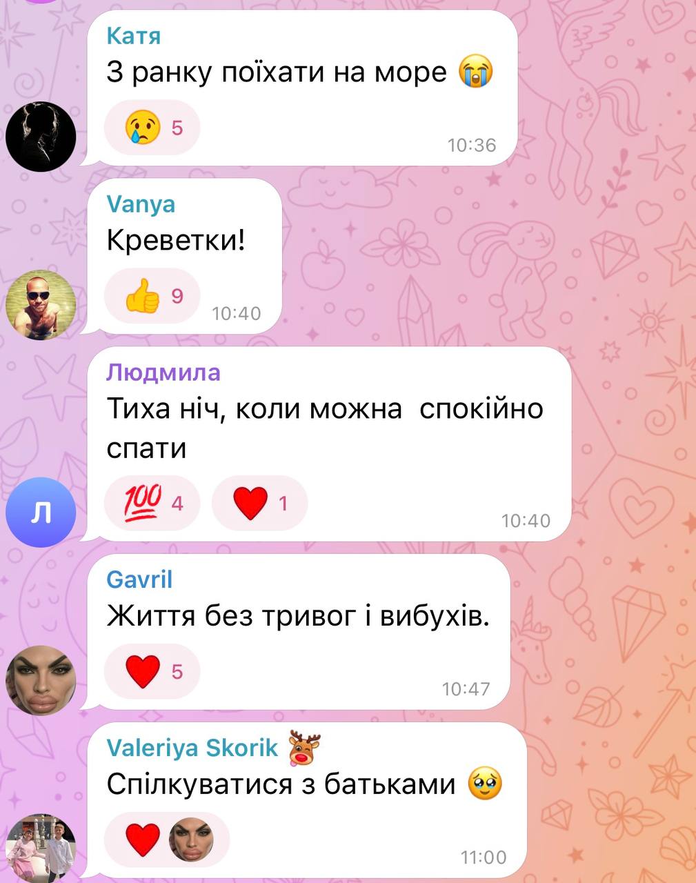 «Море, сушена рибка з креветками і небо без ракет», – написав інший учасник опитування.