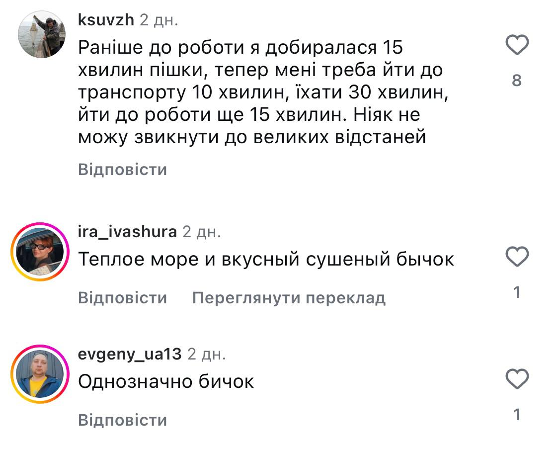 «Сісти в автобус і за півтори години доїхати на море. Або просто прогулятися вночі містом без страху», – написали інші.