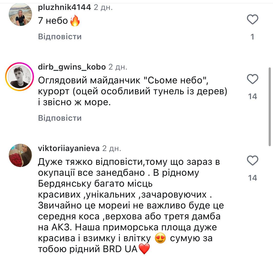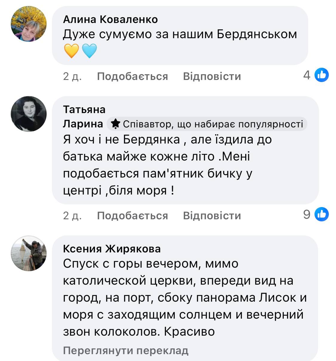 «Зберегла цей допис, щоб коли Бердянськ повернеться – відвідати всі ці місця».