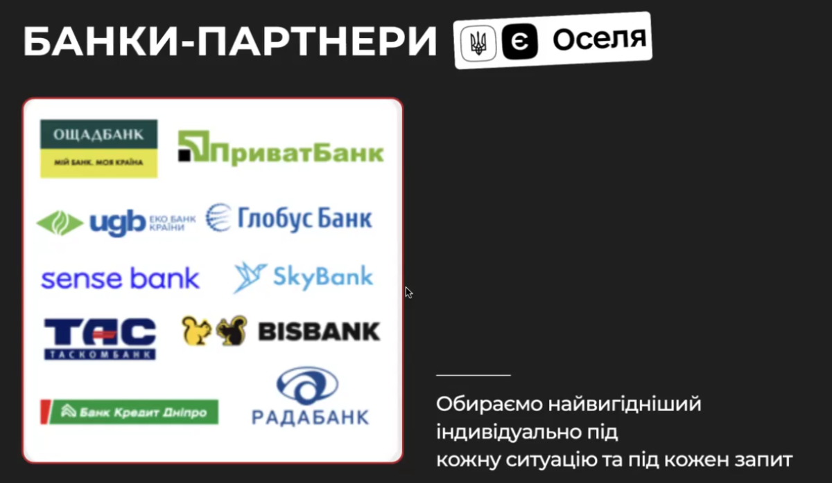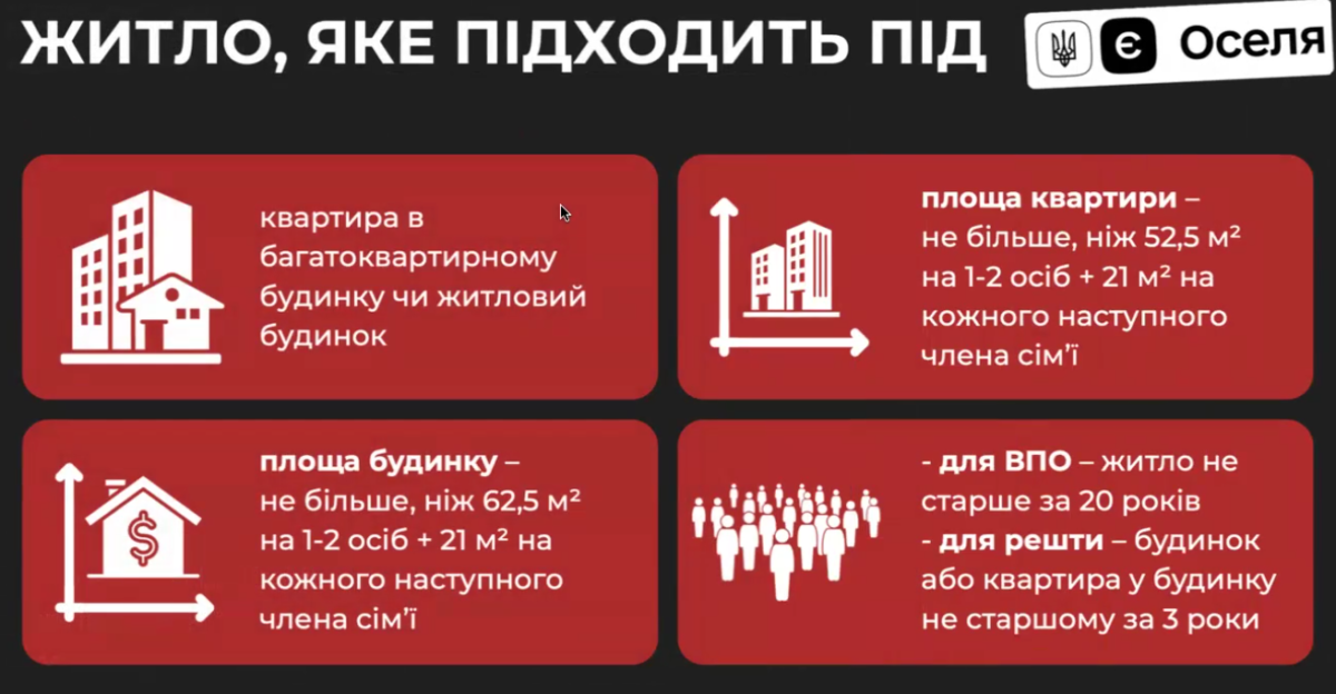 «Найстаршій нашій клієнтці було 64 роки, їй дали «єОселю» на 6 років. Вона працювала – мала ФОП, офіційний дохід, тому «єОселю» погодили та дали на 6 років. Перешкодою може бути відсутність офіційного доходу в Україні. Але при цьому ви можете взяти поручителя по кредиту. Тобто якщо у вас, наприклад, мінімально офіційна заробітна плата, але у вас є донька або син, які працюють офіційно в Україні», – запевнила рієлторка.