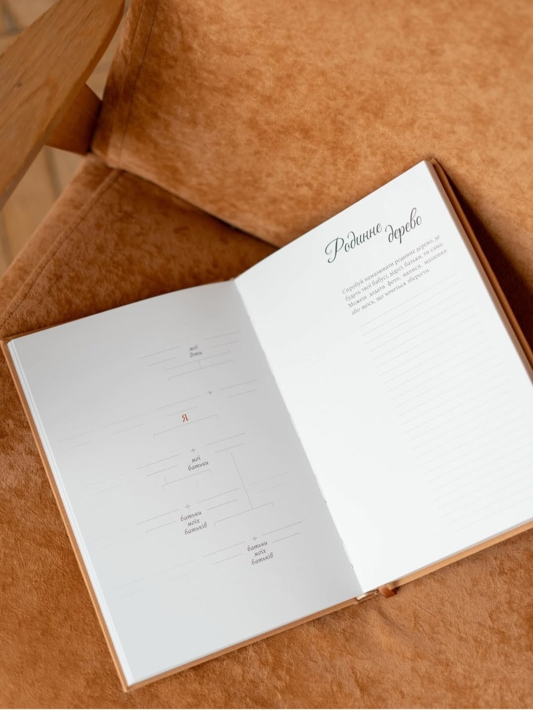«Пам’ять така цікава штука, що дуже швидко все забувається. Затираються не лише погані моменти, а й хороші. Тут не анкетні питання, а глибоке продумане інтерв’ю. Людині буде легше, її будуть наштовхувати, тут є вступи до розділів життя, щоб викликати певну ностальгію. Тут є родинне дерево, місце для рецептів, лист онукам в майбутнє. Мені дуже подобається розділ про рід: питання про дідусів, прадідусів», – розповіла дівчина.