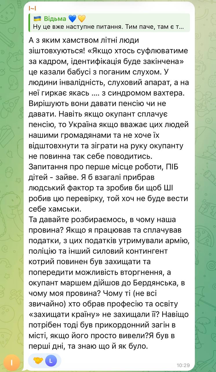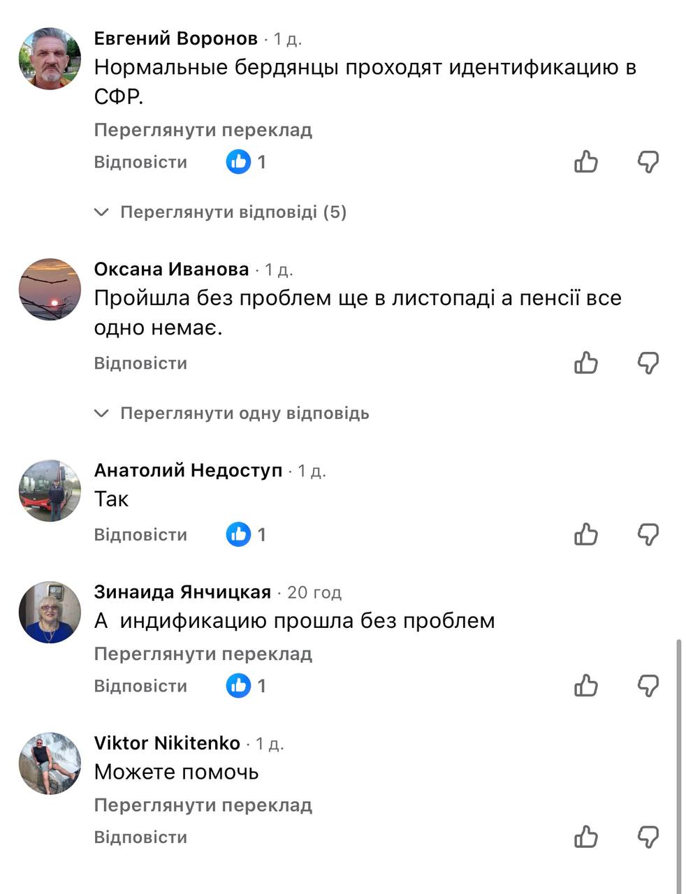 «Дорого коштує ідентифікація – від 4 і більше тисяч рублів, і так щороку треба віддати місячну пенсію за ідентифікацію» – пишуть бердянці.