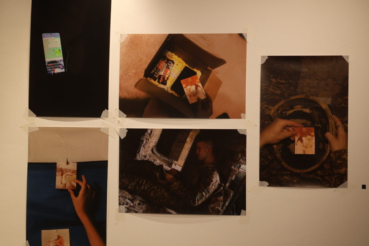 «Був показаний телефон з смс, які ти відправляєш у порожнечу, чекаючи, що рано чи пізно вони до нього дійдуть. Це фотографія, яку дівчина кладе в посилку з теплими речами, шоколадним батончиком, павербанком та відправляє. І фотографію, де він вже сидить у формі з цією фотографією», – пояснила авторка.