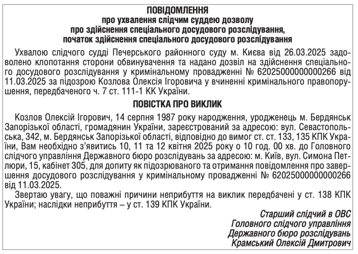 Раніше редакцією «Бердянськ 24» повідомлялось, що Український суд заочно засудив начальника бердянської катівні Олексія Бобрікова «Бердянськ 24»