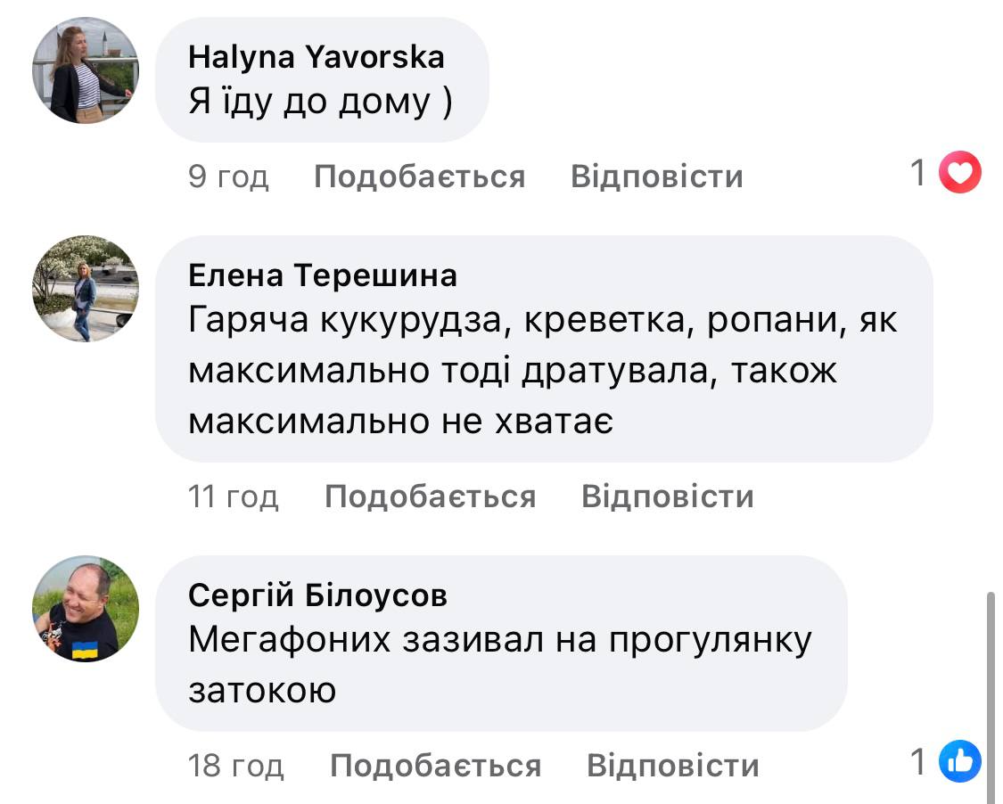 «Гаряча кукурудза, креветки, ропани… Тоді це дратувало, а тепер саме цього й бракує», – написала Олена.