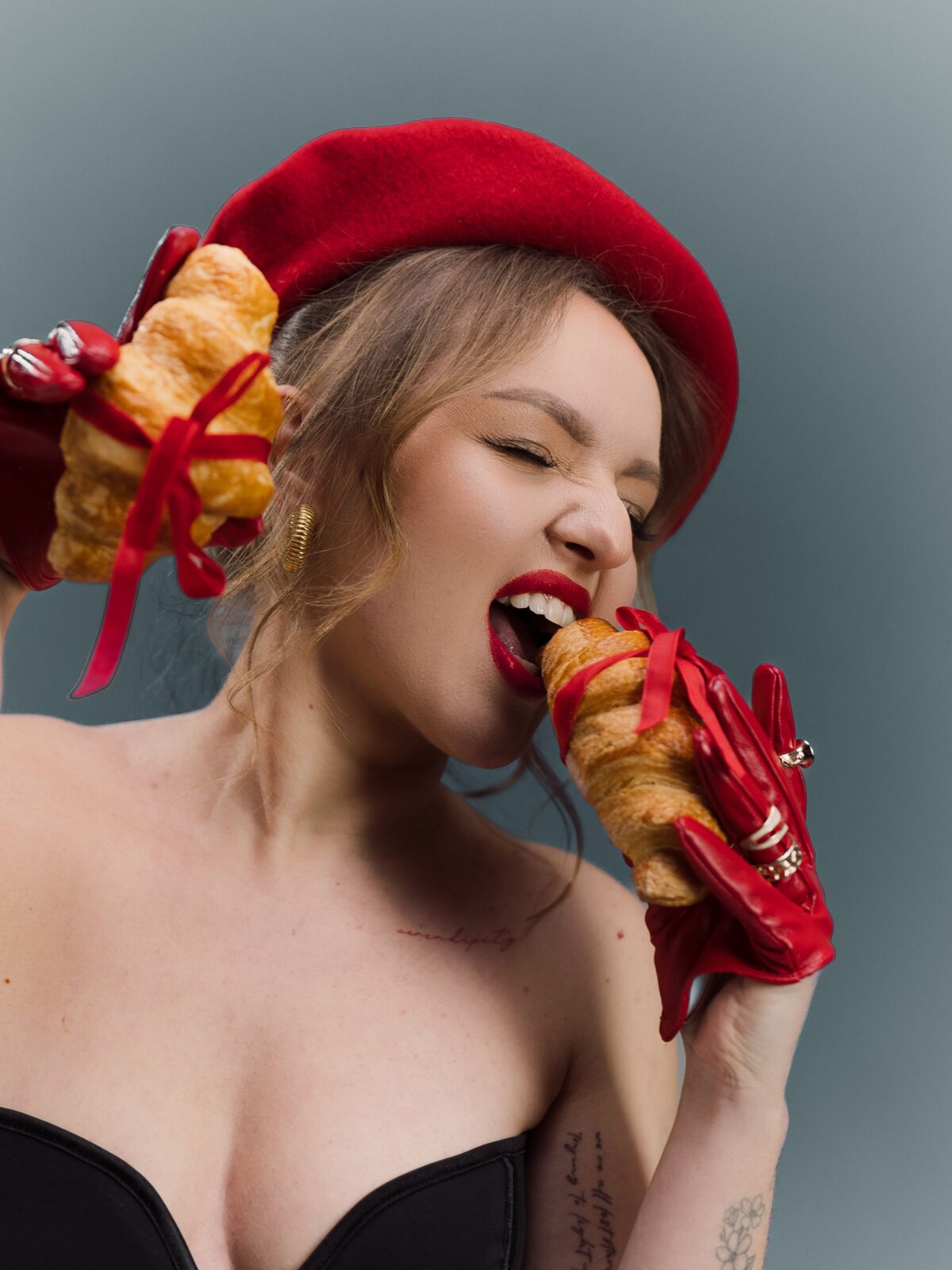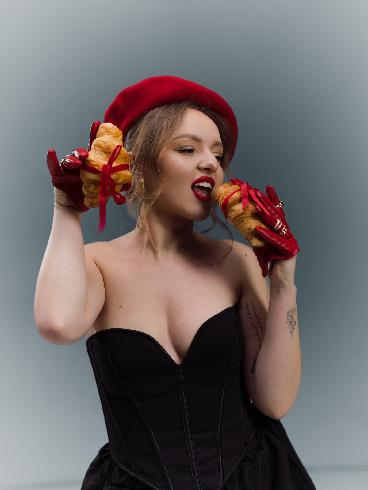 «Мені подобаються складні запити, де є «ізюминка». Наприклад, одна з останніх зйомок – дівчина в чорному корсеті, червоний берет, шкіряні рукавички та круасани, перев’язані червоною стрічкою. Це ж естетика в деталях! Але буває складно донести клієнтам, наскільки важлива підготовка. Зачіска, макіяж – це не примха фотографа. На камеру шкіра виглядає інакше, ніж у житті. Я завжди раджу – якщо не хочете професійну укладку, зробіть хоча б макіяж у майстра. Це база, яка дозволяє людині відчути себе впевненіше, а мені зробити ідеальний кадр», – пояснює фотографиня.