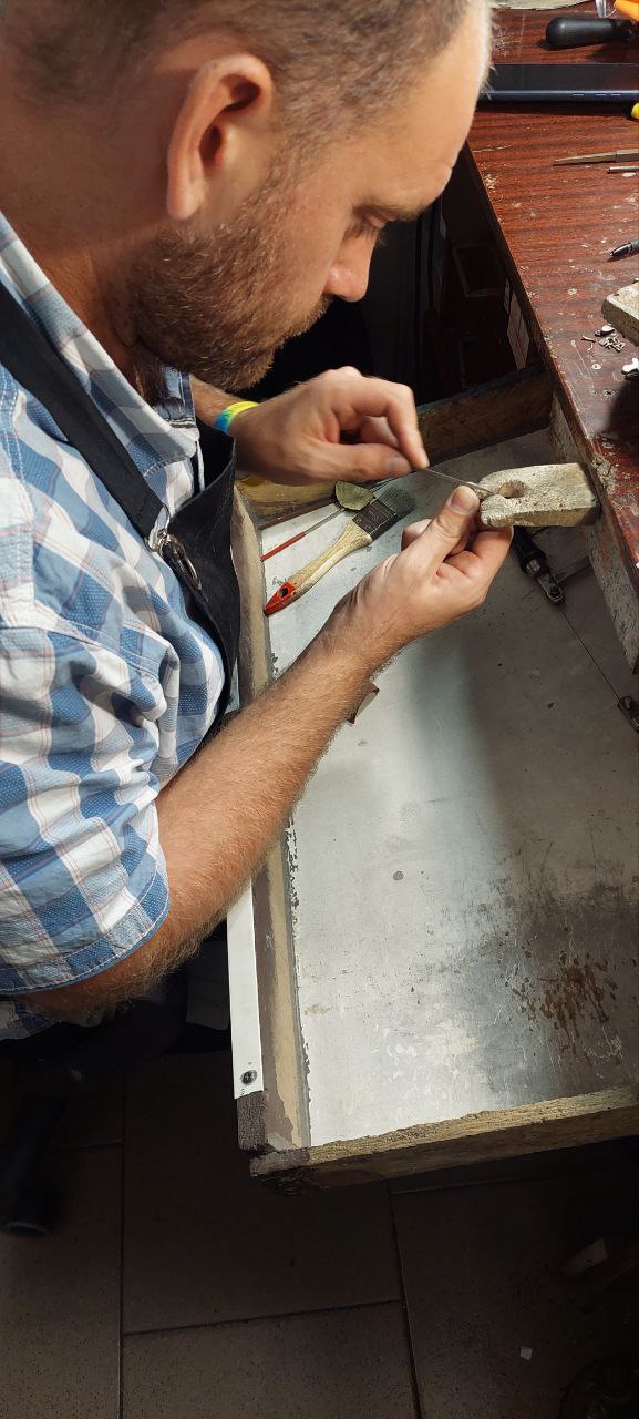 «Єдине, що лишилося – це сторінки в соцмережах і дві руки. Колеги дали старий верстак, якісь поламані інструменти. Потроху, з ремонту прикрас, з простих замовлень я почав відновлювати справу», – згадує Андрій.