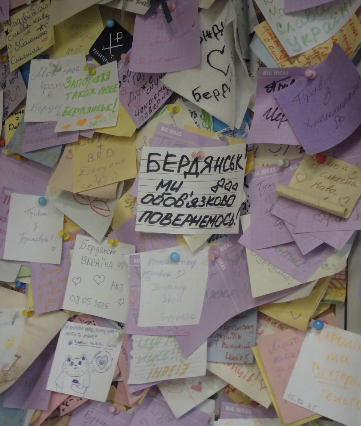 «Ми бачимо дивовижну тенденцію: люди приходять до нас не за продуктом, а за відчуттям безпеки, яке дає присутність своїх. Наш заклад став територією, де не потрібно пояснювати контекст твого горя чи радості. Тут назви мікрорайонів – АКЗ, Колонія чи Слобідка – звучать як паролі до спільної бази даних. Для багатьох бердянців це єдина можливість відчути, що їхня ідентичність не розчинилася у великому місті, що вони все ще існують як частина цілісного соціуму, попри те, що їхня набережна зараз заблокована окупаційними прапорами. Це і є головна функція – репрезентувати місто там, де його фізично немає», – зазначає Ксенія Клейнос.