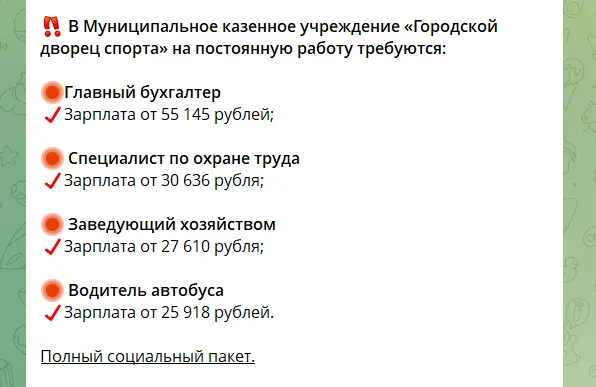 Найбільш розповсюджені будівельні та технічні вакансії. На комунальні та приватні підприємства шукають слюсарів, машиністів, покрівельників, зварювальників тощо. Їм обіцяють платити від 45 до 61 тисячі рублів на місяць.