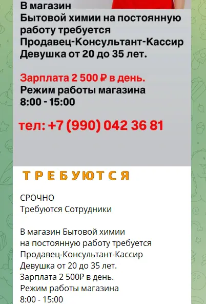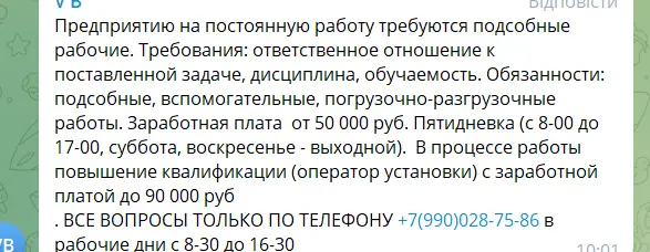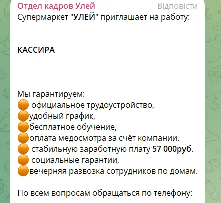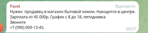 Серед оголошень про роботу є пропозиції в так званій ДНР або на території росії. Там обіцяють зарплати дещо вище.