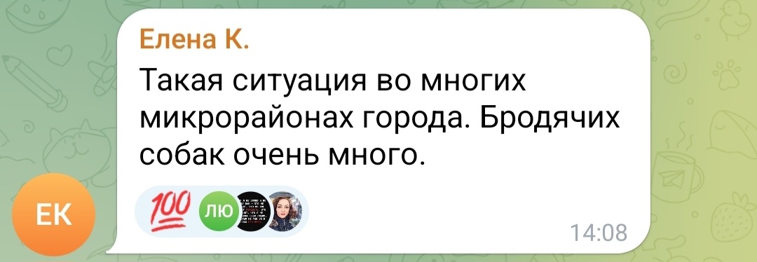 «Ці собаки дуже велика проблема. Я живу біля 16 школи. Всю ніч собачий гавкіт. Розірвали двох котів. На очах у дітей. У зграї понад 20 собак. І ще виводок. А вони ростуть швидко. Уявляєте, що буде. А діти йдуть до школи та зі школи. І ця зграя бігає поряд. Невже треба чекати на трагедію?», – пише Валентина.